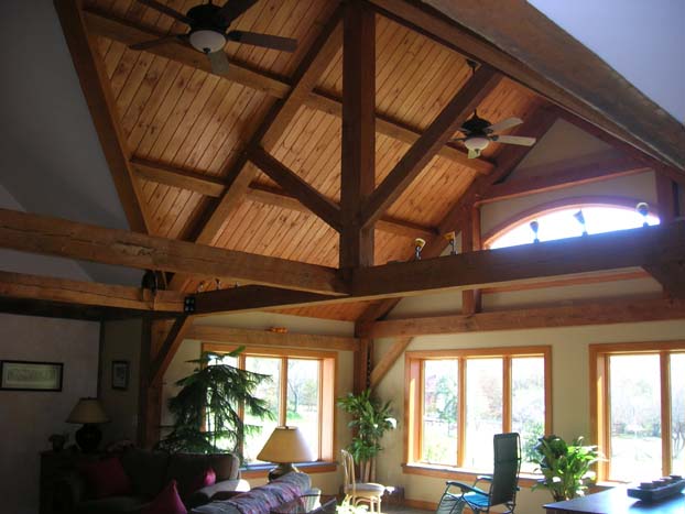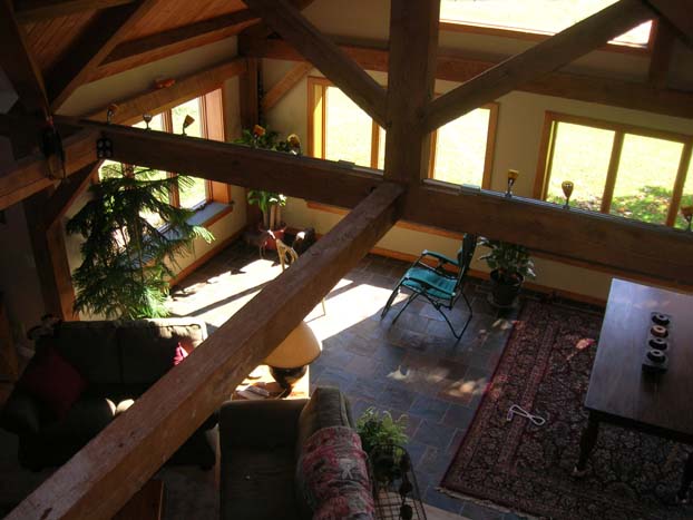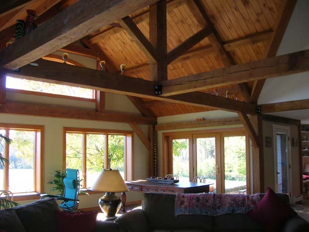 The goal of this project was to seamlessly add new living space and to expand the view of the owner's lovely horse farm in North Stonington. This required integrating new post and beam construction with the existing post and beam structure of the home. This light-filled space features a slate floor with radiant heat, bluestone window sills and natural fieldstone on the exterior.